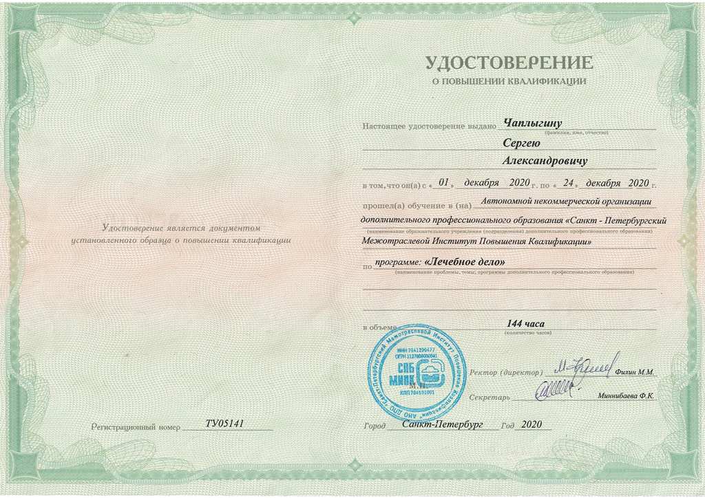 - Повышение квалификации - 2020 - Санкт-Петербургский Межотраслевой Институт Повышения Квалификации